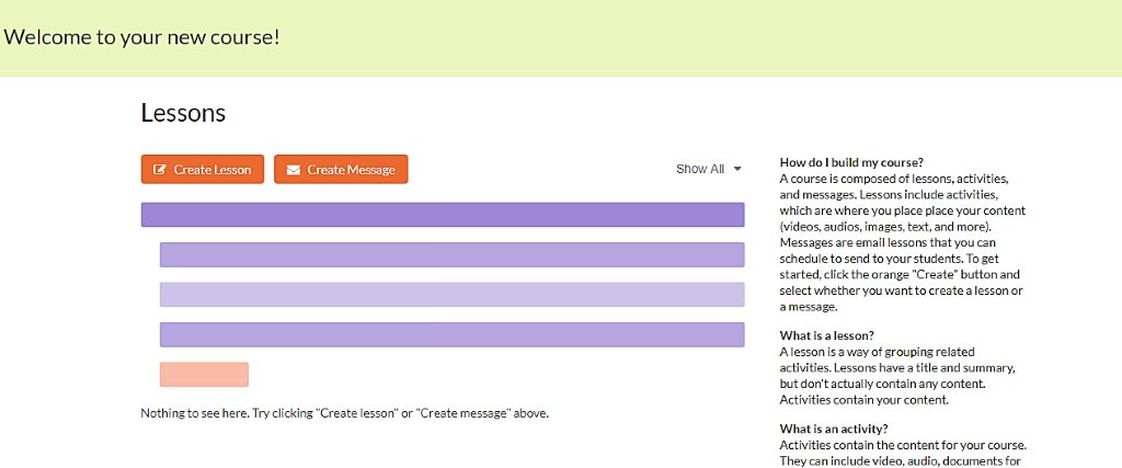 Now, as you’ve probably guessed already, messages are the smallest entity here, followed by activities, and then lessons. That means the latter is basically a grouping of the former two. And to help your students sort through it all, you can use titles for the lessons along with brief course summaries.