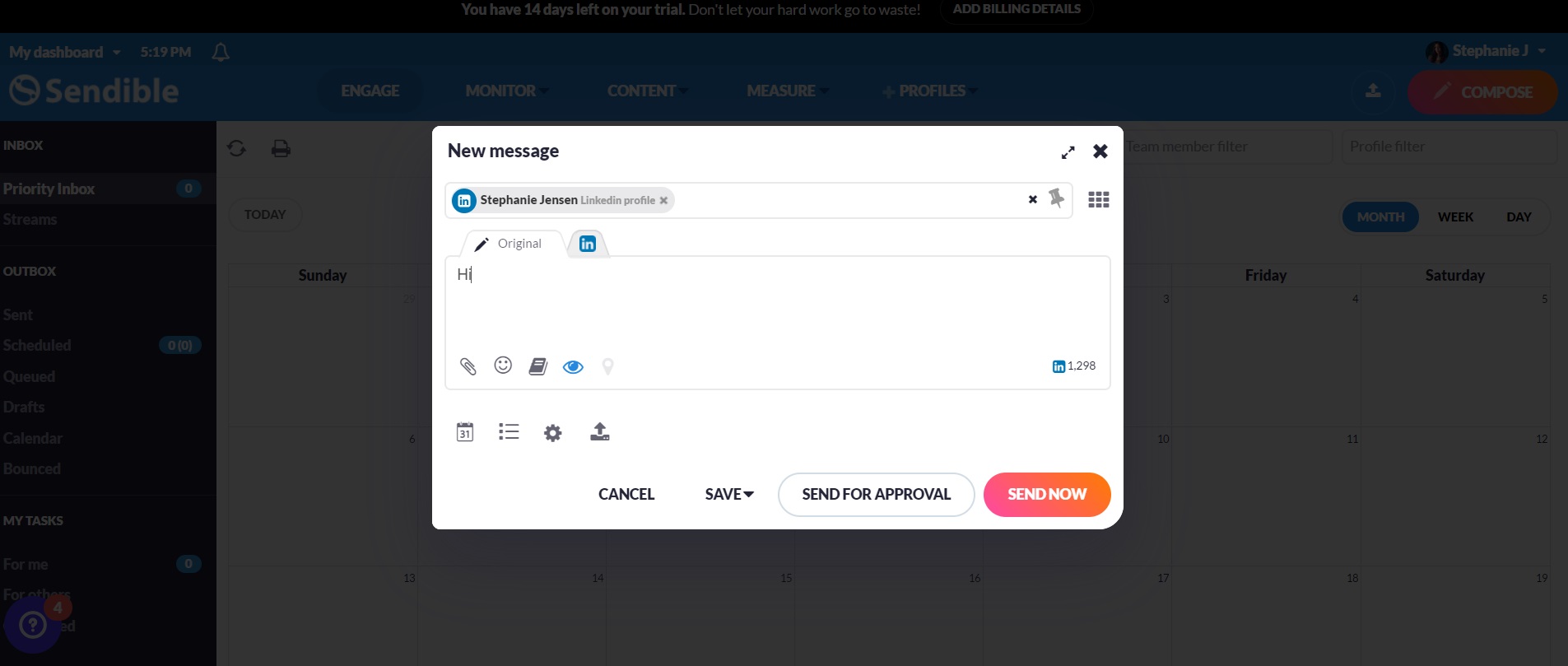 Unlike Hootsuite, Sendible also has a “Send for Approval” option. This is convenient if there are several members of your social media marketing team. The post can get sent to management and approved before posting on your social media.